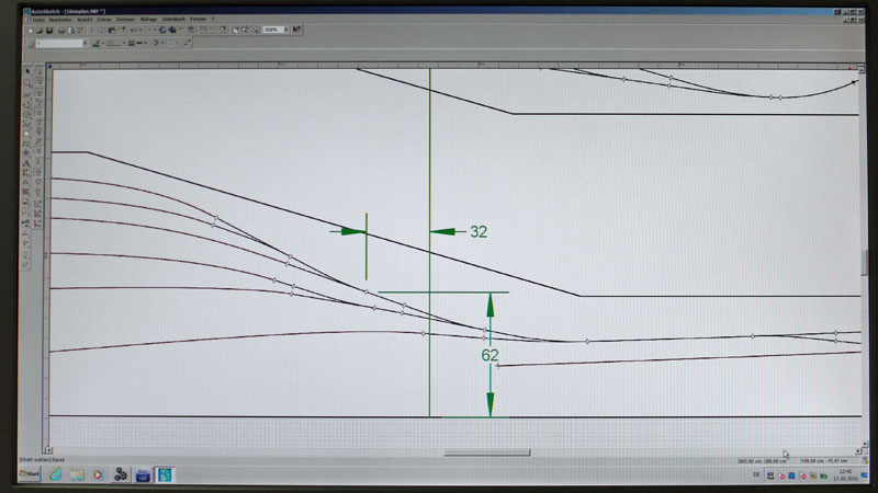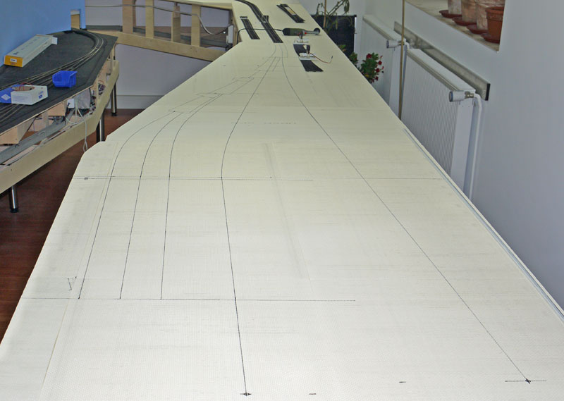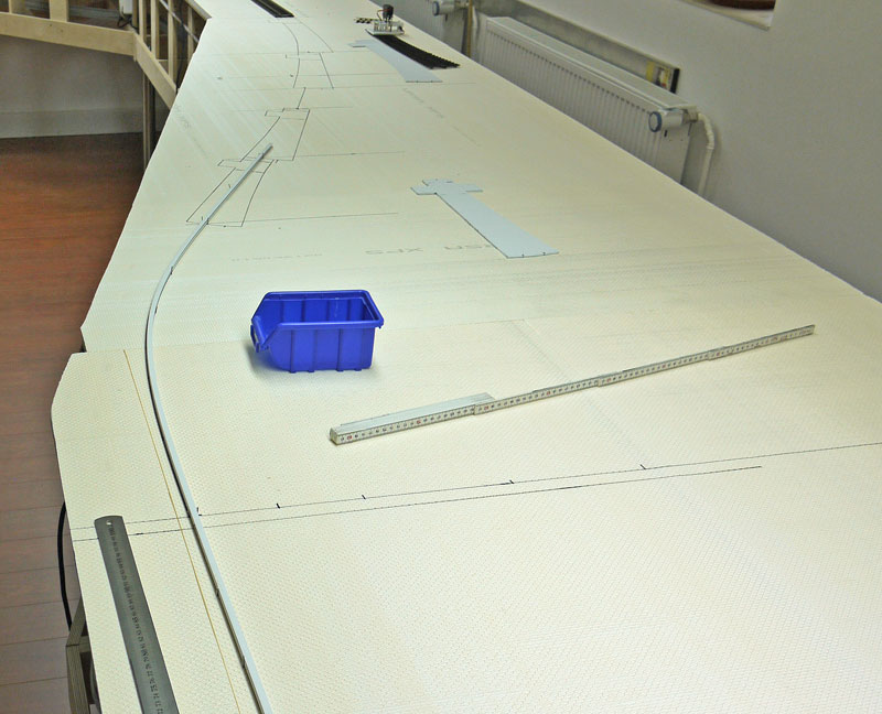 Nachdem der Untergrund vorbereitet ist, übetrage ich den Gleisplan auf