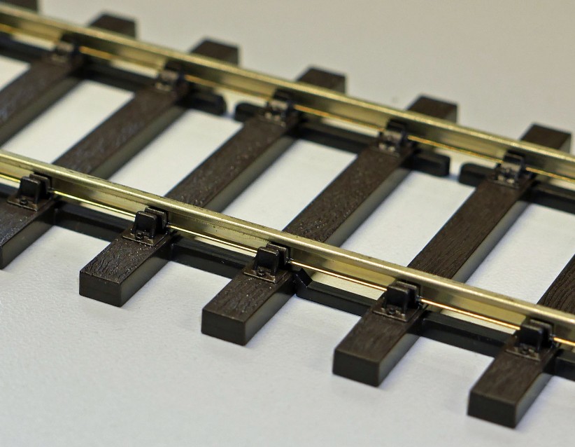 Man sieht, die Schienen sind unten schmaler als oben und "schweben" über den Schwellen. Und natürlich sind die Kleineisen völlig anders. Ich nehme aber an, das sieht im eingeschotterten Zustand schon nicht mehr so schlimm aus.