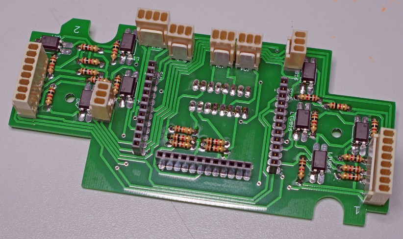 Auf dem nächsten Bild sind schon alle Kabel an die Stecker angeschlossen, die Decoderplatine liegt daneben.