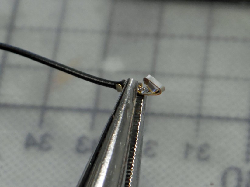 eingebaut, weil sonst das Kabel zu kurz ist. Die Klammern, die den Lautsprecher