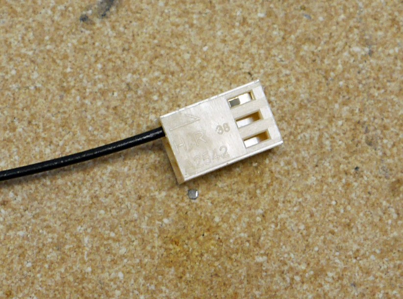 Dann die originale Elektronik entfernen. Auf dem Bild oben ist alles zu sehen, was davon übrig bleiben sollte. Die schwarzen und braunen, etwas dickeren Kabel führen zu den rechten und linken Gleiskontakten. Die roten sind für die Schleifkontakte der 3Leiter-Version und werden abgekniffen. Die Kabel gehören an die zwei dreipoligen Stecker für den Gleisstrom.