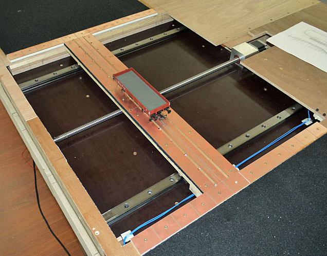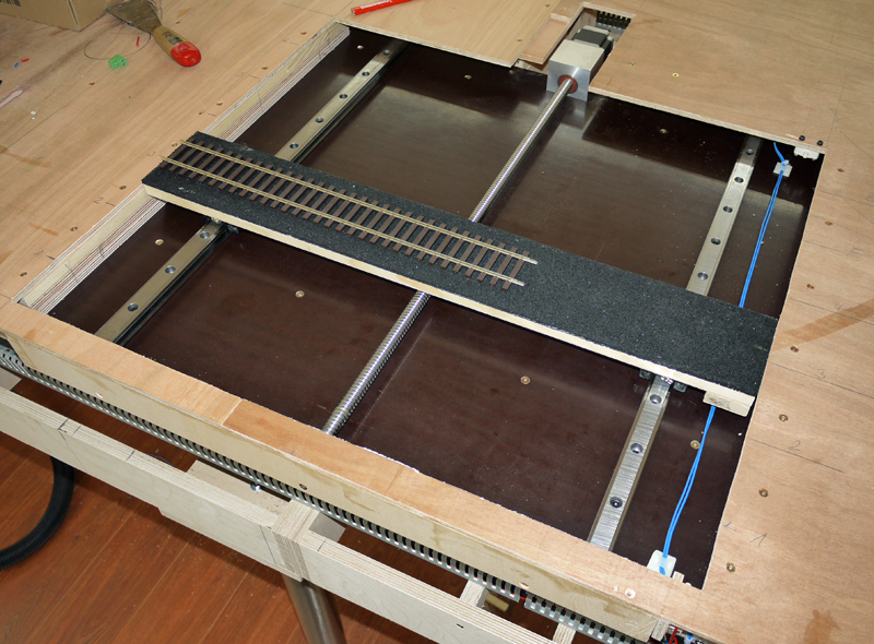 Hier ist die schon funktionsfähige Schhiebebühne zu sehen, der nur das Bühnengleis und die Gleisanschlüsse fehlen.