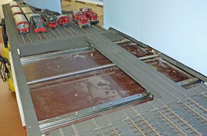 Hier nun die fertige Schiebebühne, allerdings müsste mal wieder Staub gewischt werden.