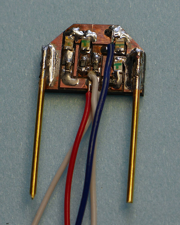 der Platine gebraucht, was aber nicht möglich ist. Die zwei Messingdrähte mit 1