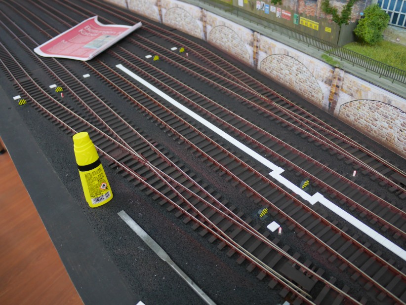 Bevor ich die Signale auf der Anlage eingepflanzt habe, habe ich noch schwarz-gelb gestreifte Aufkleber hergestellt. Danach habe ich sie verdrahtet