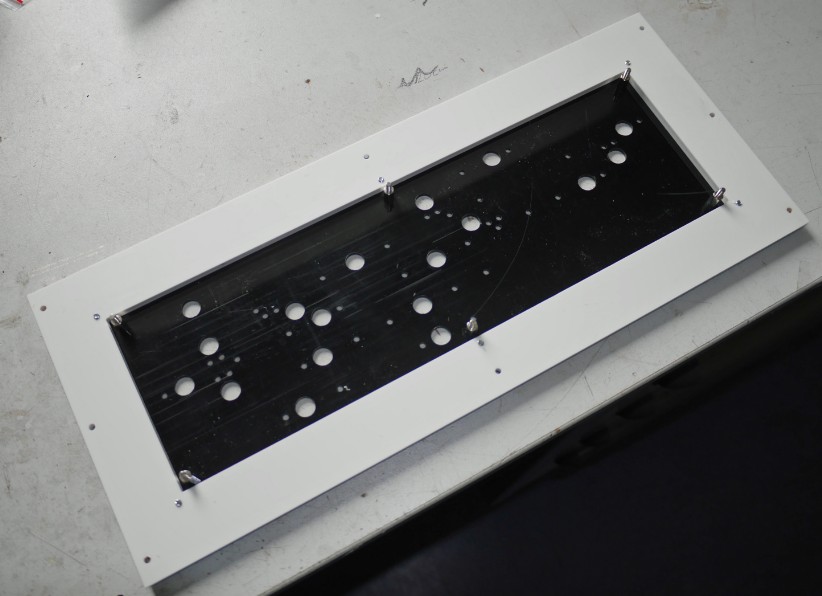 Die Stellpulte habe ich aus einem speziellen Polystyrol gefräst, das im Kern schwarz ist und auf der Oberseite eine dünne weiße Beschichtung hat. Wird diese Beschichtung weggefräst, kommt der schwarze Kern zum Vorschein.